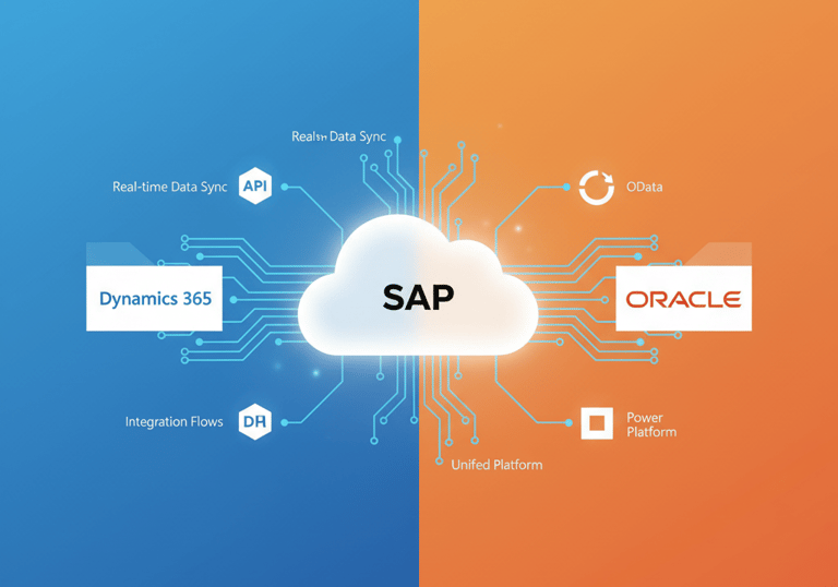 We deliver secure and seamless integrations between Dynamics 365, SAP, Oracle, and other platforms — connecting your business systems with modern technologies like APIs, OData, Web Services, and Power Platform to ensure reliability and scalability.